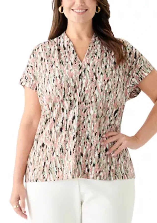 Plus Foil Print Pleated Knit Top
