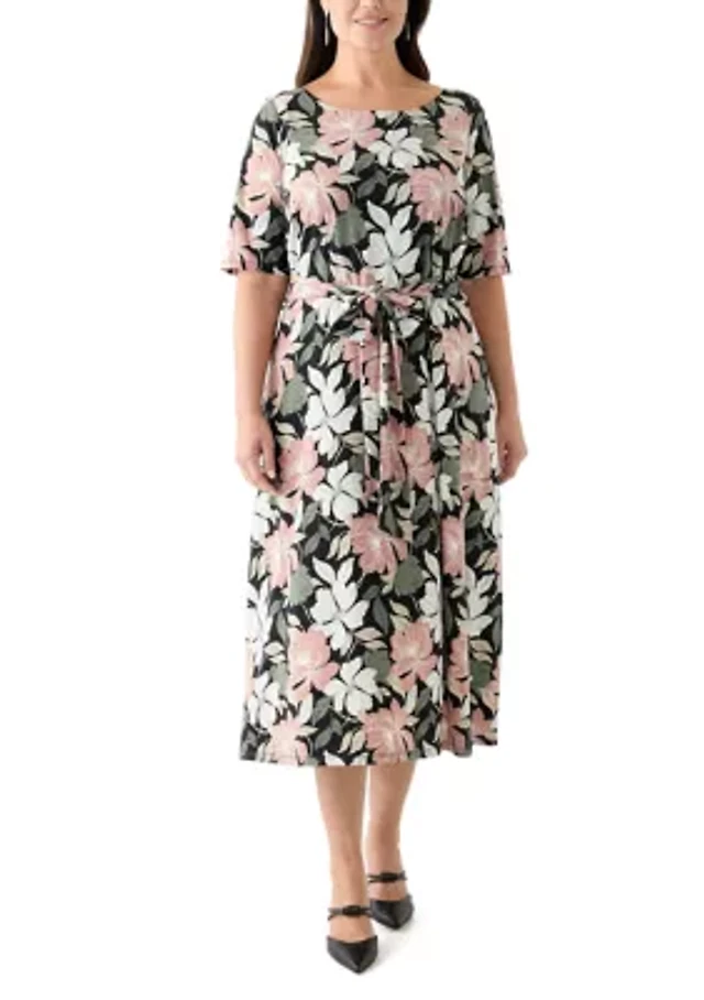 Plus Floral Print Fit and Flare Knit Dress