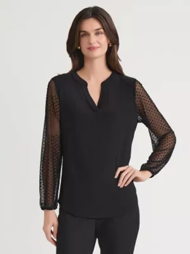 Petite Split Neck Point D'esprit Knit Top