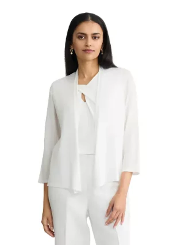 PETITE STRETCH CREPE COLOR BLOCKED CARDIGAN JACKET