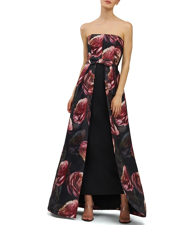 Kay Unger Constance Floral Mikado Strapless Column Gown