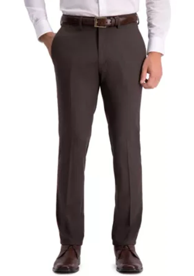 Stretch Shadow Check Slim Fit Flat Front Dress Pants