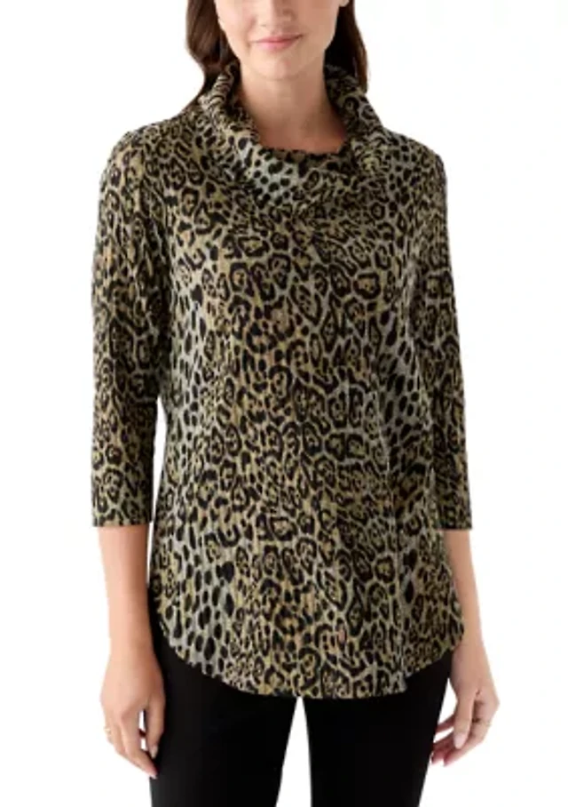 Petite Knit Velvet Sharkbite Cowl Neck Top