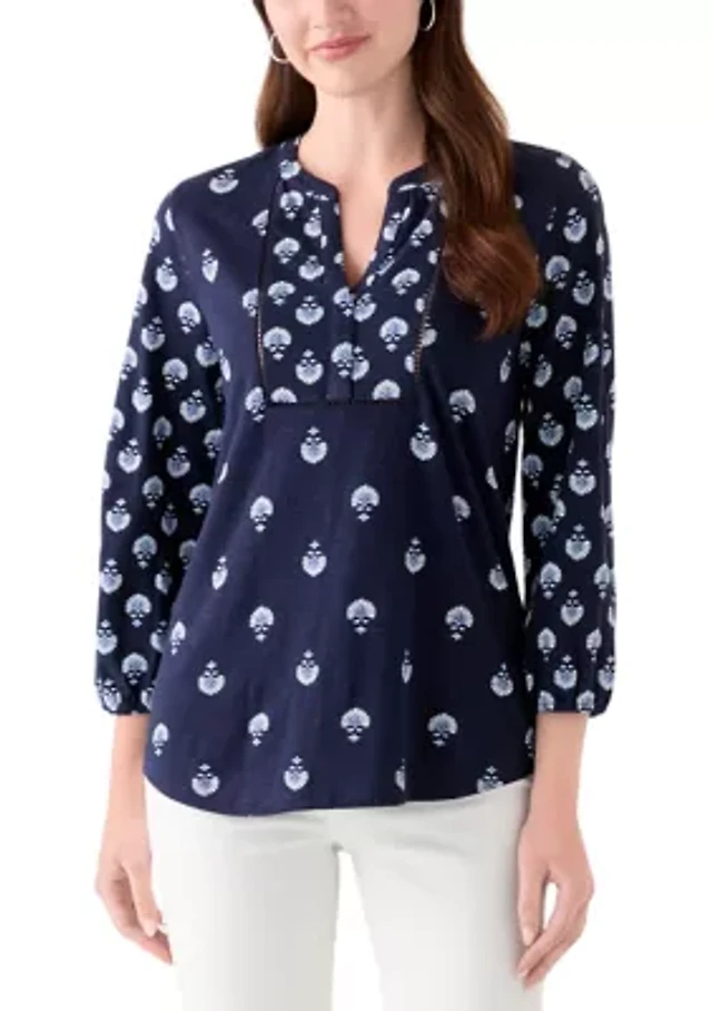 Petite 3/4 Pleated Sleeve Printed Shirt