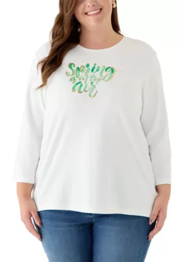 Petite 3/4 Sleeve Crew Neck Graphic Top