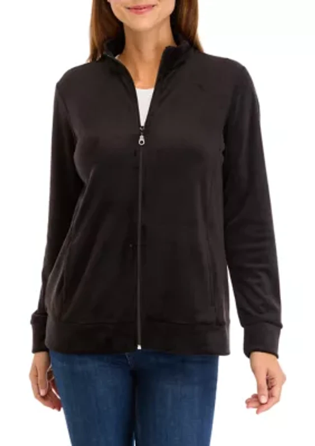 Petite Long Sleeve Velour Split Neck Tunic Top