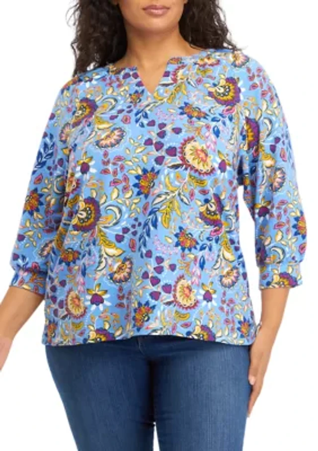 Plus 3/4 Sleeve Kurta Printed Peasant Top