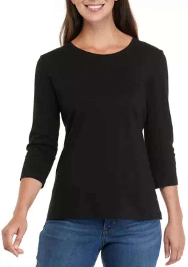 Petite 3/4 Sleeve Crew Neck Printed Top