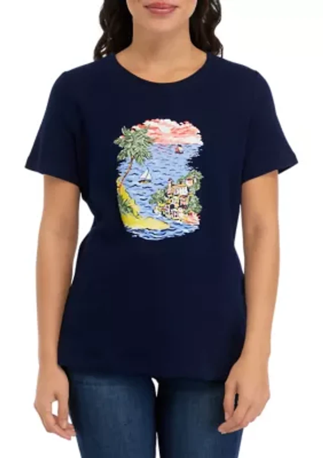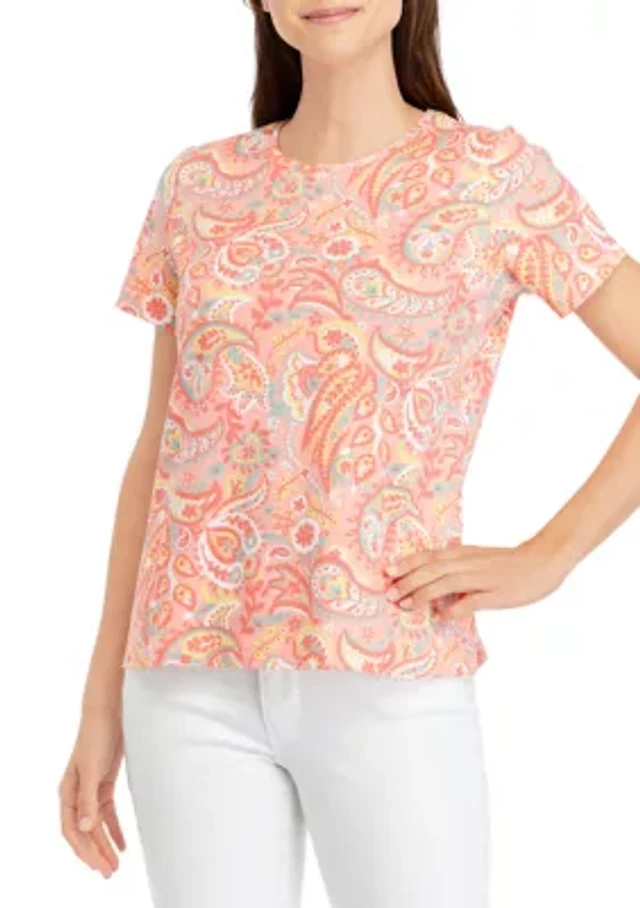 Petite Short Sleeve Floral Print Cotton T-Shirt