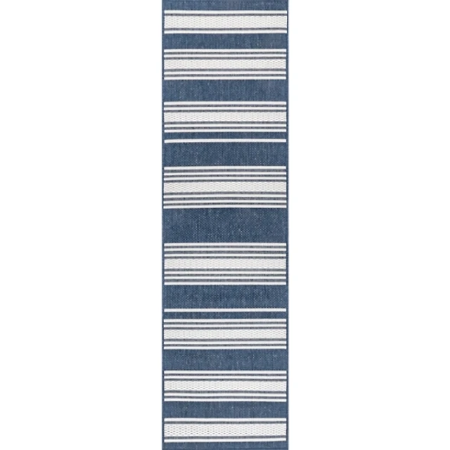 Navy Romy Striped Indoor/Outdoor Runner, 2x8