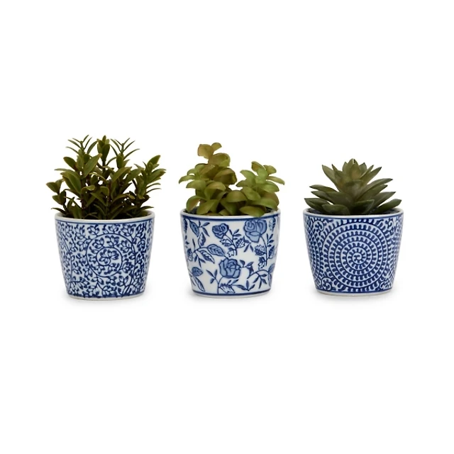 Mini Succulents in Toile Vases