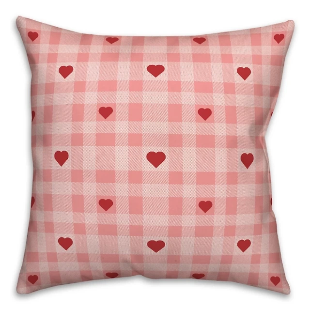 Pink Plaid Hearts Throw Pillow
