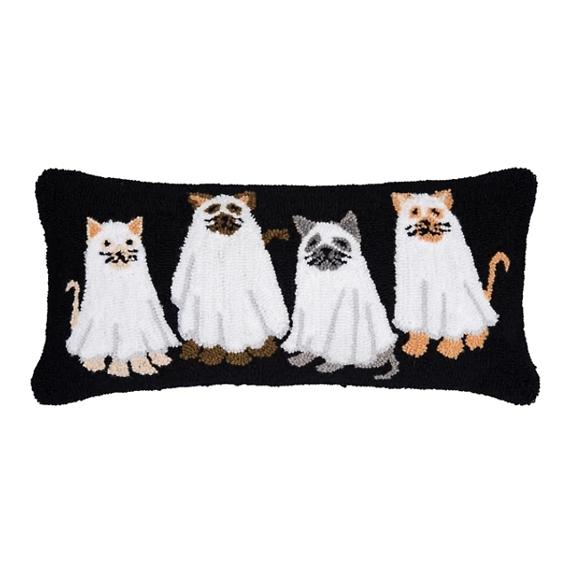 Ghost Cats Halloween Hooked Pillow
