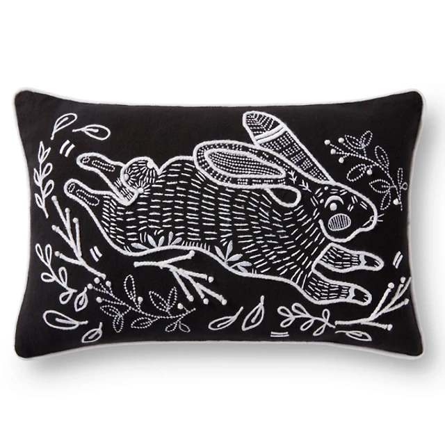 Goldenrod Bunny Embroidered Easter Throw Pillow