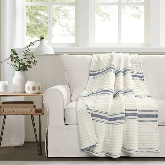 Maui Blue Striped Fringe Throw
