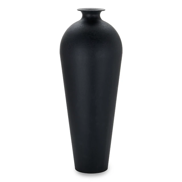 Matte Blue Gray Ceramic Vase, 12.6 in.