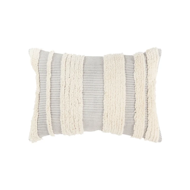 White and Gray Braided Stripe Lumbar Pillow