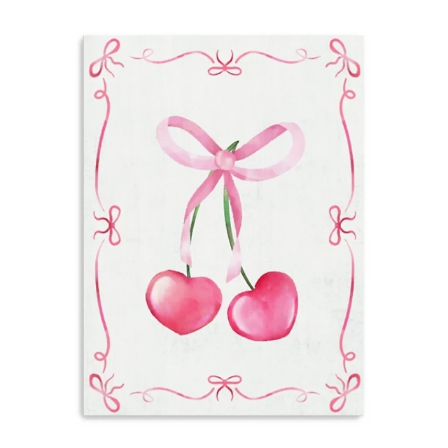 Pink Cherries and Bows Canvas Art Print