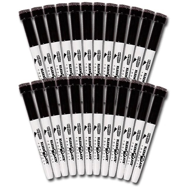KleenSlate® Black Fine Point Dry Erase Markers with Erasers, Pack of 24