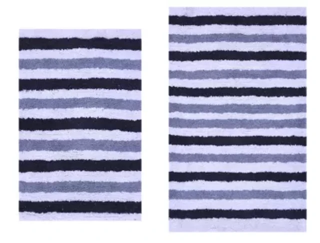 2 PC YARN DYED BATH RUG SET 17x24 & 21x34 THIN STRIPE GREY