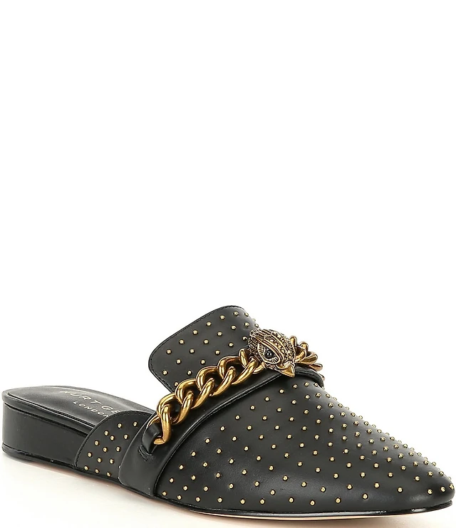 Kurt Geiger London Chelsea Leather Stud Embellished Chain Hardware Mules