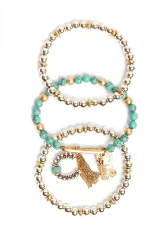 Two Tone Turquoise Tone Bead Flex Cuff Bracelet
