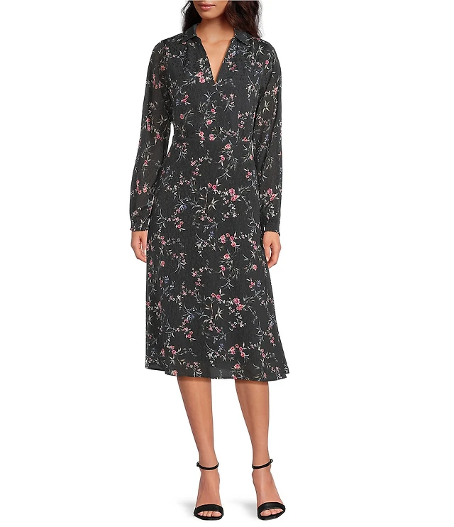 Layered With Love Embroidered Chiffon Long Sleeve Tiered Floral Midi Dress