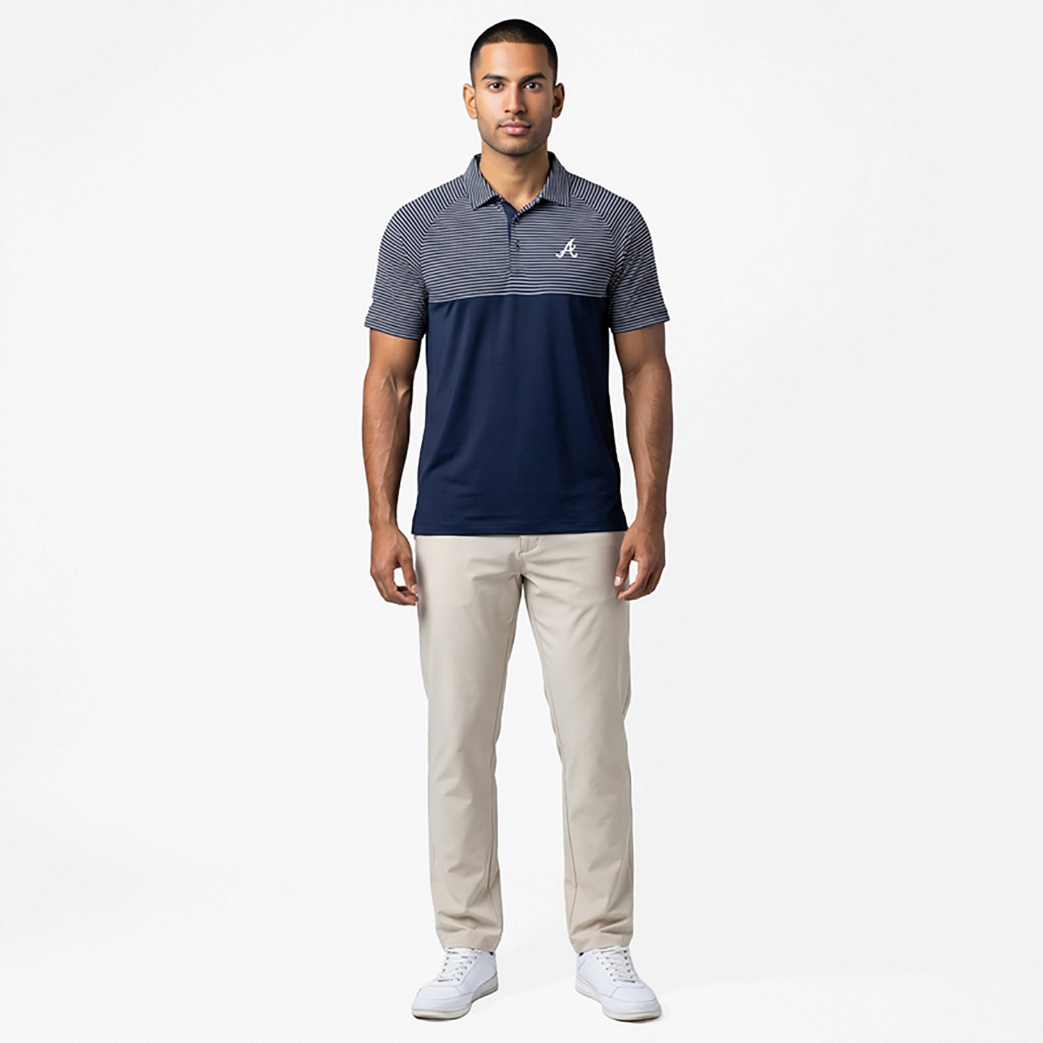 Levelwear Men's Atlanta Braves Classic Stripes 3D Patch Short Sleeve Polo Shirt