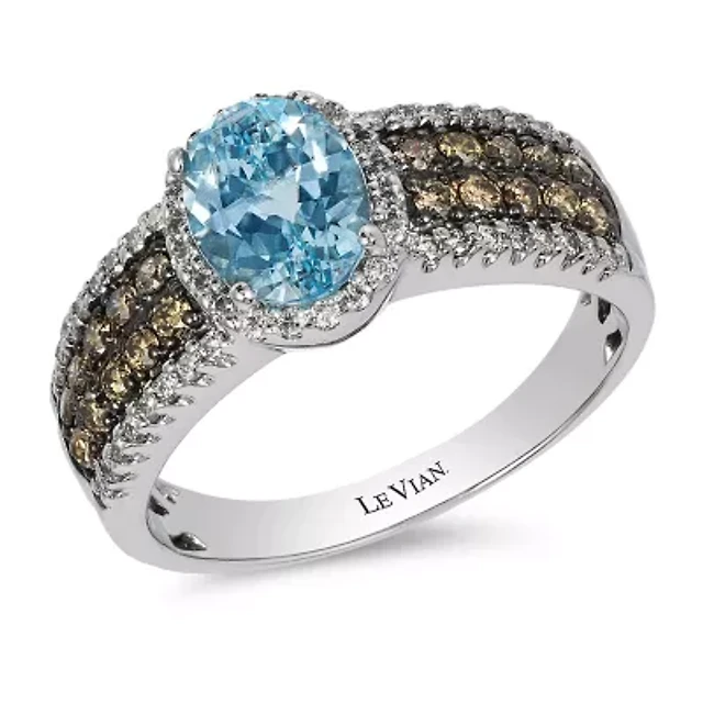 Le Vian® Sale Ring featuring 1 cts. Sea Blue Aquamarine®, 1/3 cts. Chocolate Diamonds®, 1/4 cts. Vanilla Diamonds® set in 14K Vanilla Gold®