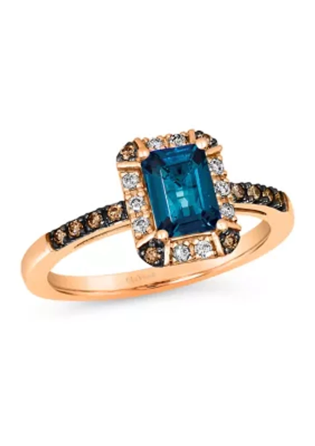 Ring featuring 5 cts. Deep Sea Blue Topaz™, 1/4 cts. Nude Diamonds™, 1/4 cts. Chocolate Diamonds® set in 14K Strawberry Gold®