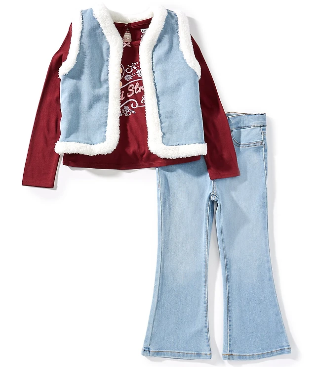 Levi's® Little Girls Sleeveless Denim Vest, 5-Pocket Jeans & Long-Sleeve Graphic Knit T-Shirt Set