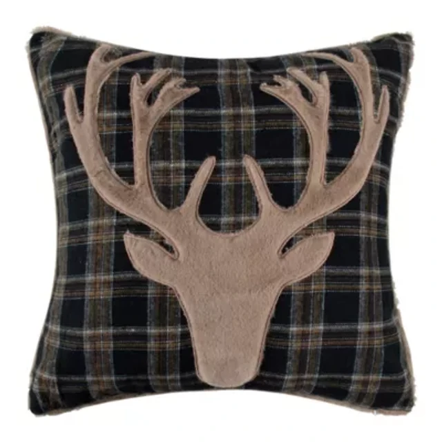 Sleigh Bells Red Deer Embroidered Pillow