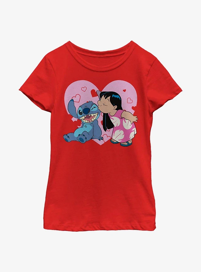 Disney Lilo And Stitch Valentines Kisses Youth T-Shirt