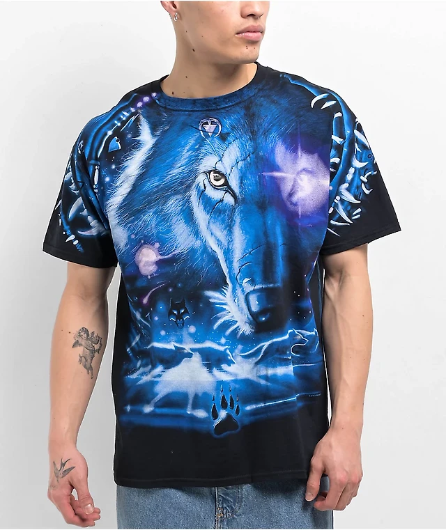 Liquid Blue Wolf Black T-Shirt
