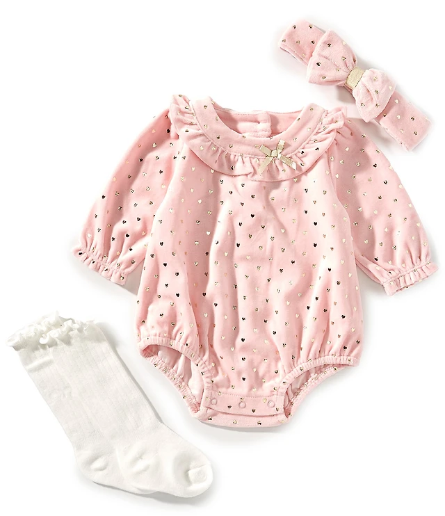 Little Me Baby Girls Long-Sleeve Smocked Velour Bodysuit Headband & Socks Set
