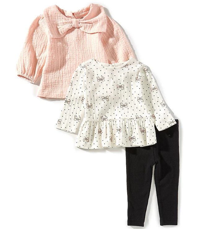 Little Me Baby Girls Long-Sleeve Metallic-Bow-Motif Double-Knit Top & Matching Double-Knit Jogger Pants Set
