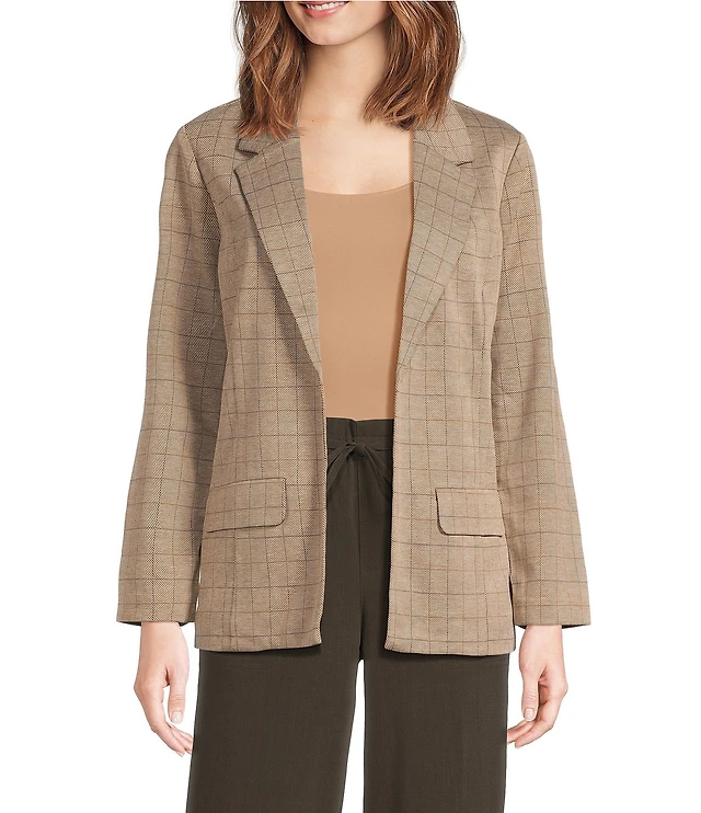 Liverpool Los Angeles Petite Size Jacquard Grid Check Notch Lapel Long Sleeve Open-Front Boyfriend Blazer