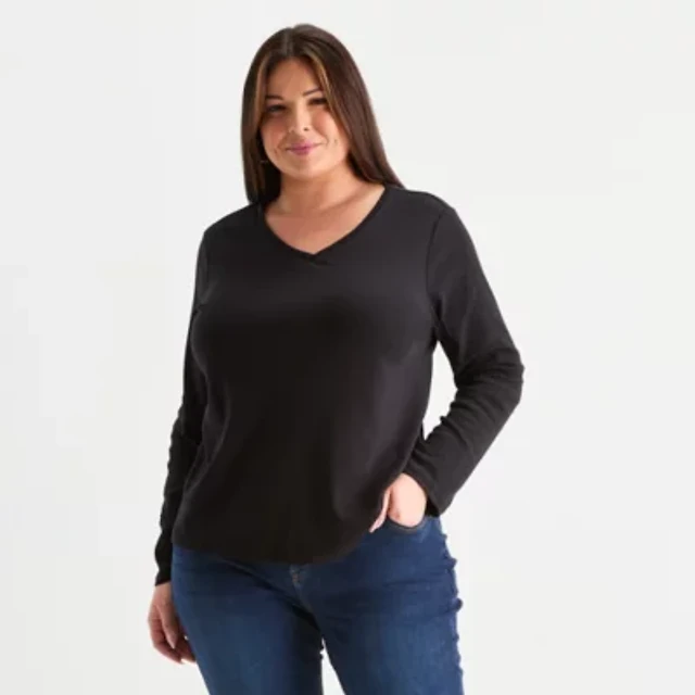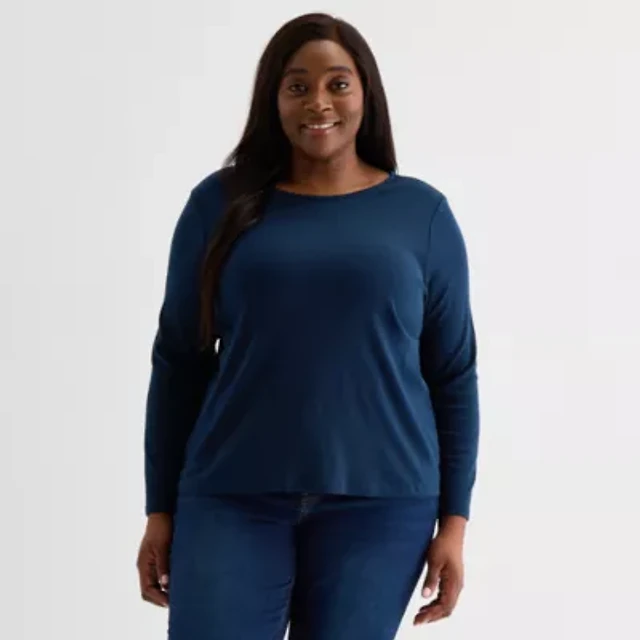 Liz Claiborne Womens Plus Round Neck Long Sleeve Blouse