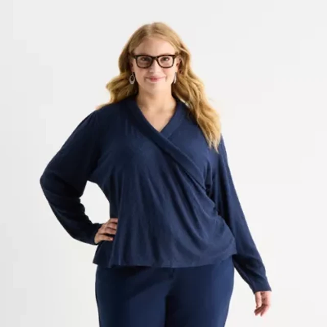 Liz Claiborne Plus Womens Split Crew Neck 3/4 Sleeve Tunic Top