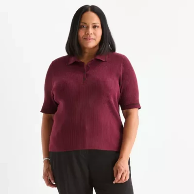 Liz Claiborne Womens Plus Round Neck Short Sleeve Blouse