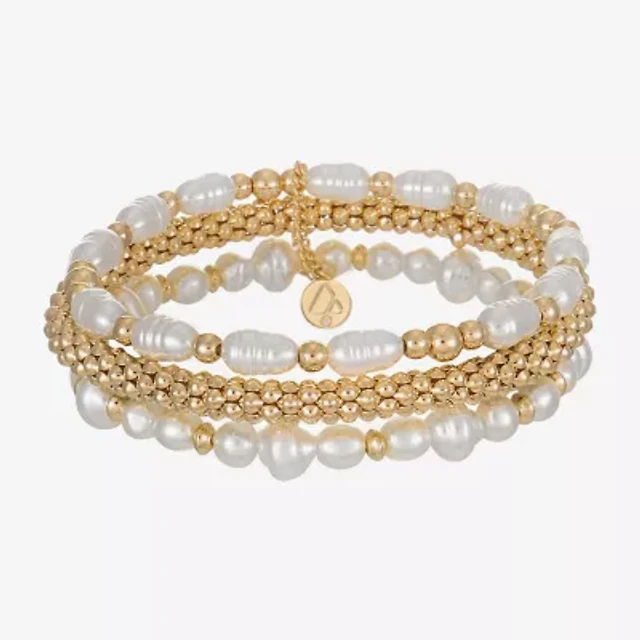 Liz Claiborne Gold Tone Womens Simulated Pearl Stretch Bracelet
