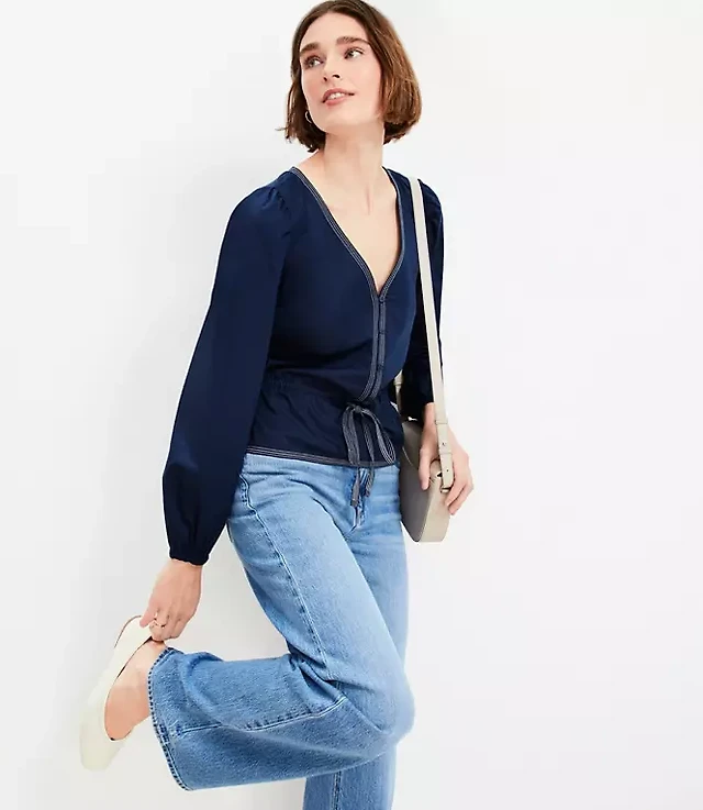 Petite LOFT Versa Crepe Drape Palazzo Pant