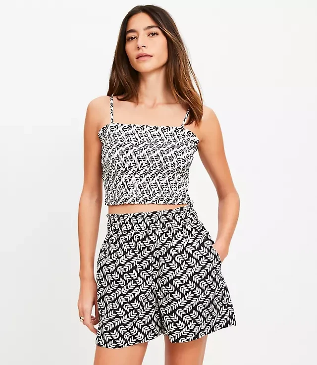 LOFT Beach Paisley Linen Blend Cutout Tank Top
