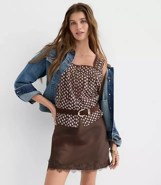 Petite Lace Trim Satin Bias Mini Skirt