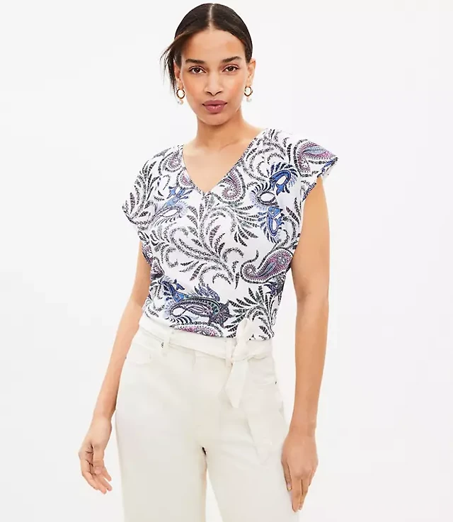 Petite Forget Me Not Flutter Sleeve Mixed Media Top