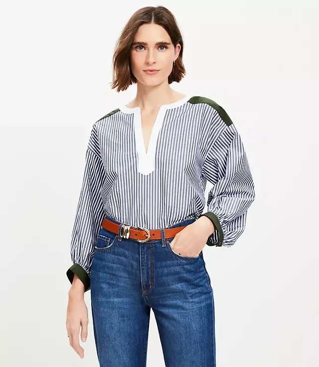 Petite Striped Poplin Wide Sleeve Modern Utility Shirt