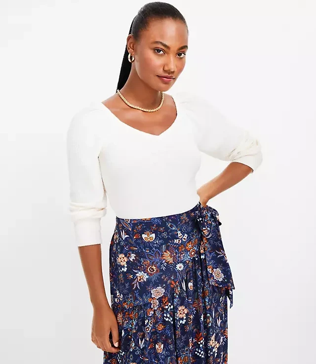 Ribbed Collared Wrap Sweater