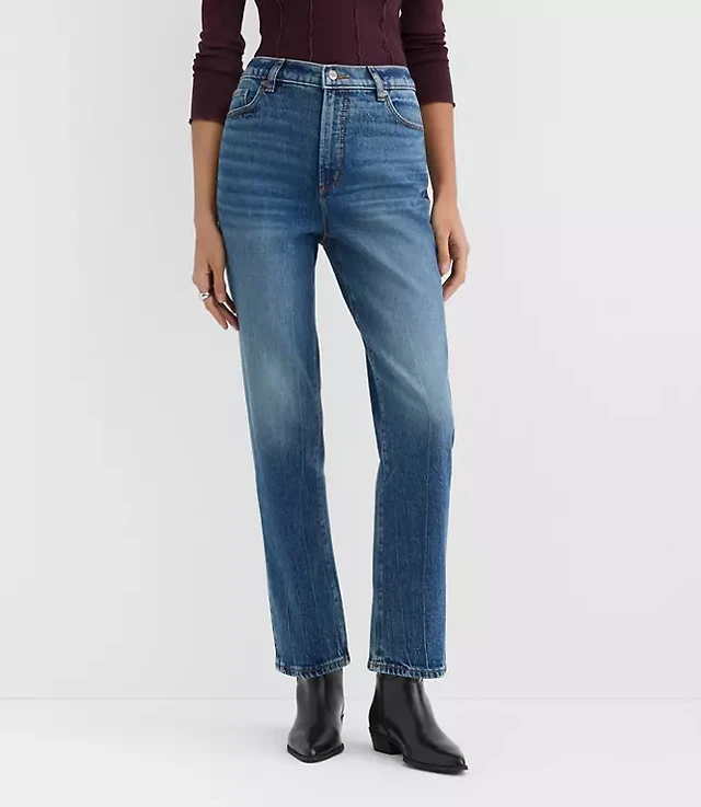 Curvy High Rise Straight Jeans Floral
