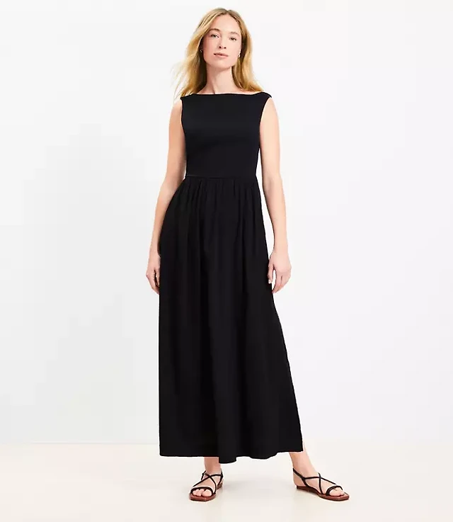 Petite LOFT Beach Linen Blend Cutout Back Mini Pocket Dress