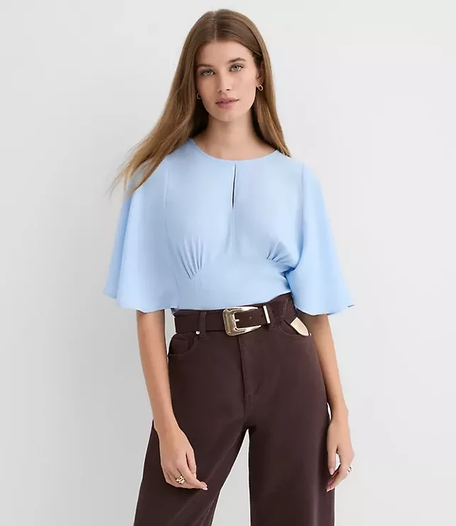 Petite LOFT Versa Crepe Drape Pleated Strapless Top